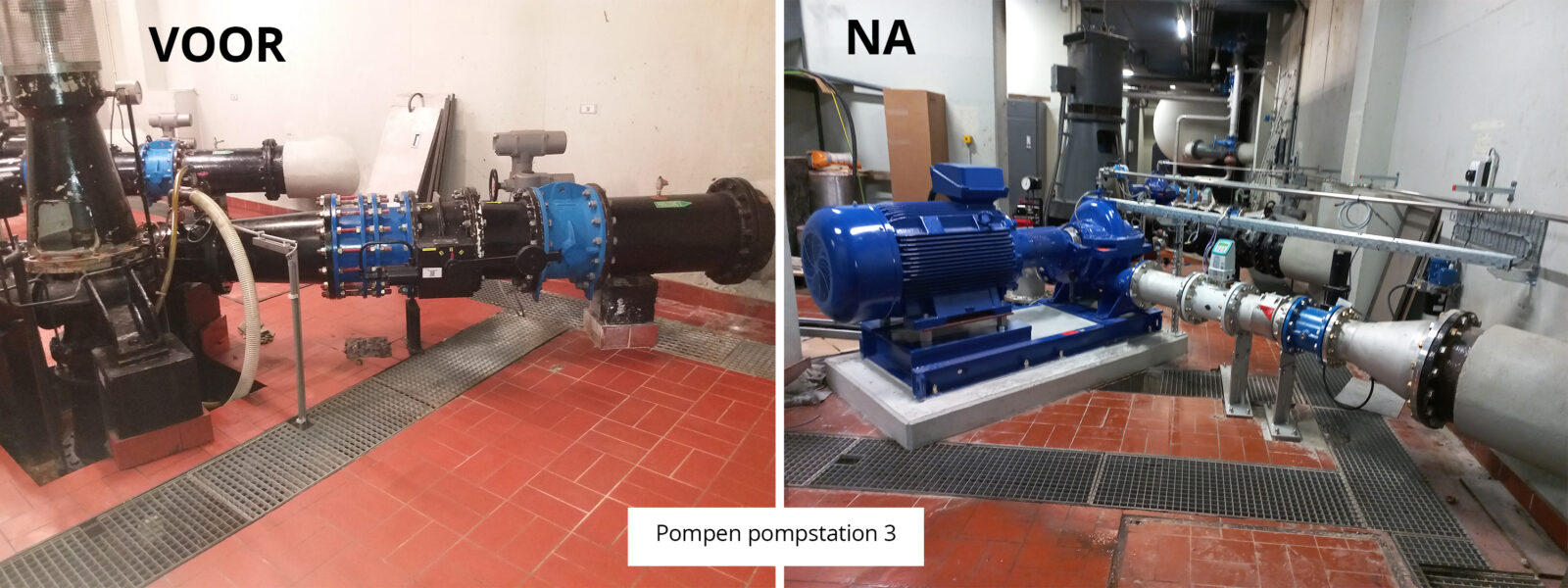 Met het oog op de toekomst hebben we pompstation 3 in Notmeir gerenoveerd. We vervingen de vervuilende dieselmotoren door duurzame elektrische motoren, wat onze ecologische voetafdruk vermindert. Bij uitval van de netspanning wordt continue werking gegarandeerd door UPS-systemen.