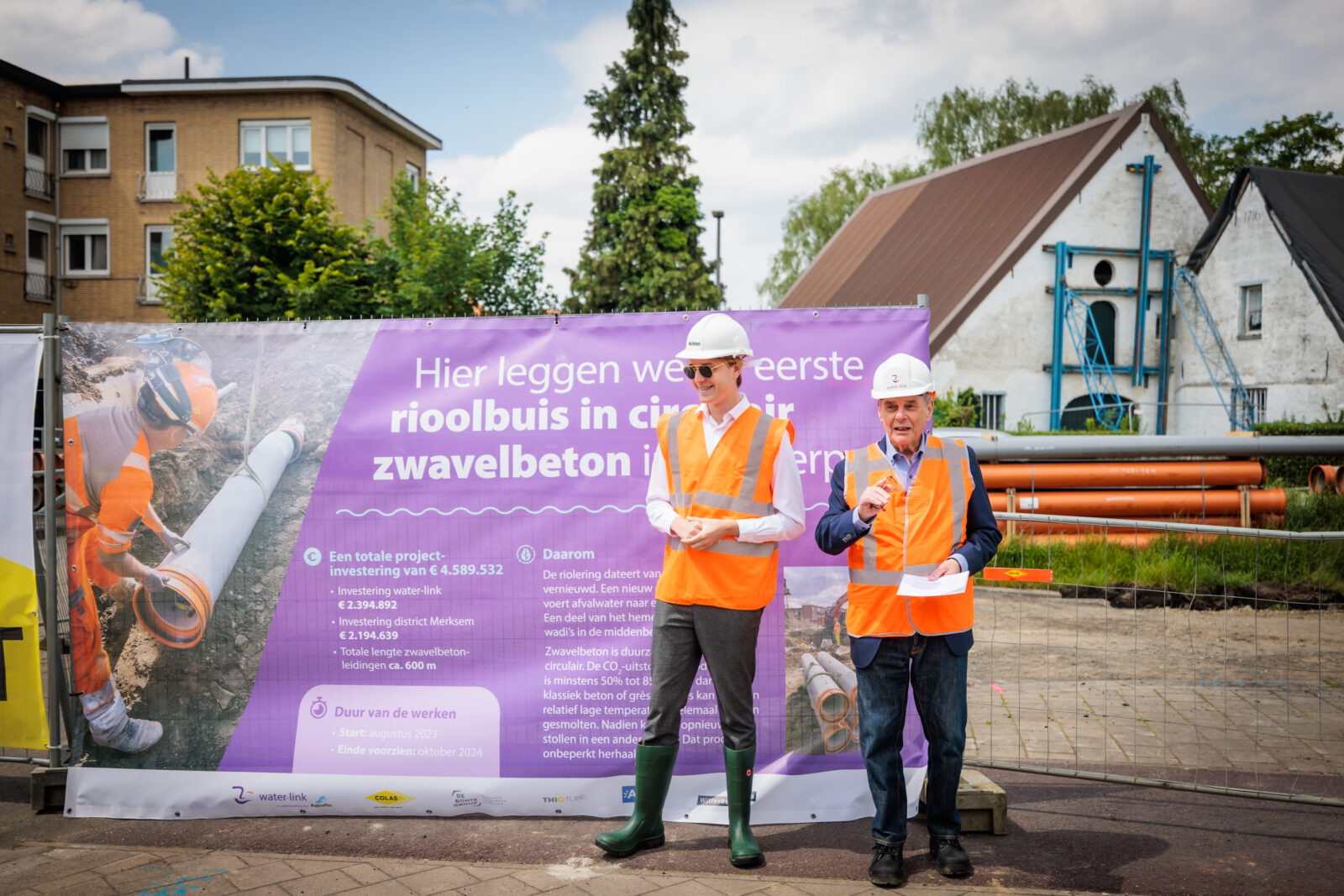 Water-link zette in 2024 een belangrijke stap richting circulariteit door als eerste rioolbuizen van circulair zwavelbeton te gebruiken bij rioleringswerken in Antwerpen. In samenwerking met Aquafin daagde water-link de markt uit om duurzame innovaties te ontwikkelen en ondersteunde het betonbedrijf De Bonte Group bij de introductie van hun volledig herbruikbare Thiotube-rioolbuizen. Deze buizen verlagen de CO2-uitstoot tot wel 85% en dragen bij aan een duurzamere infrastructuur, in lijn met water-links ambitie om de ecologische voetafdruk van haar projecten te minimaliseren.