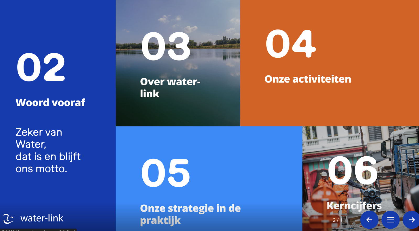 Zeker van water. Nu en later. Dat is en blijft onze kernmissie. In 2024 hebben we belangrijke stappen gezet om die belofte waar te maken in een waterlandschap dat voortdurend evolueert. Met een scherpe focus op innovatie, duurzaamheid en slimme samenwerkingen zorgen we ervoor dat water-link klaar is voor de uitdagingen van morgen.